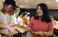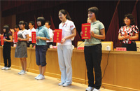 李俐萱女士向品學(xué)兼優(yōu)的學(xué)生頒發(fā)興業(yè)助學(xué)金。