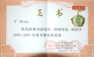 ·2006年11月,丁杰董事長獲得“2005-2006年度齊魯光彩獎?wù)隆?br>