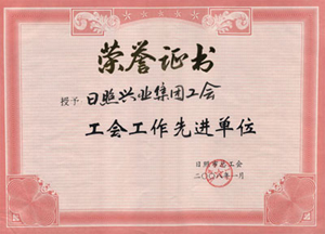·2008年,授予“日照興業(yè)集團(tuán)有限公司工會(huì)房地產(chǎn)開發(fā)有限公司工會(huì)模范職工小家”