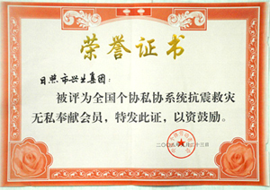 ·2008年,被評為全國各協(xié)私協(xié)系統(tǒng)抗震救災無私奉獻會員