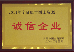 ·2012年3月,2011年度日照市國(guó)土資源誠(chéng)信企業(yè)