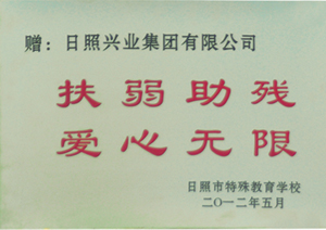 ·2012年5月,興業(yè)集團(tuán)榮獲“扶弱助殘,愛(ài)心無(wú)限”獎(jiǎng)狀