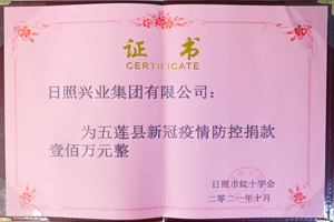 2021年10月,興業(yè)集團(tuán)為"五蓮縣新冠疫情防控捐款壹佰萬(wàn)元"