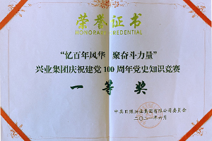 2022年6月,興業(yè)集團(tuán)獲“憶百年風(fēng)華 聚奮斗力量”慶祝建黨100周年黨史知識競賽一等獎