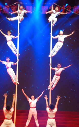幾名特殊的嘉賓的到來,讓晚會增添了一份的感動,他們是興業(yè)希望小學(xué)的老師和同學(xué)代表以及我集團(tuán)資助的大學(xué)生代表,一句“謝謝興業(yè)集團(tuán)的叔叔阿姨們”,一個鞠躬,一曲《愛的世界》讓全場唏噓動容,他們用自己平實的語言表達(dá)了對興業(yè)的愛,用自己質(zhì)樸的歌聲表達(dá)對那些勇于承擔(dān)社會責(zé)任的企業(yè)和企業(yè)家們的感恩。十年里興業(yè)的發(fā)展可謂一步一個臺階節(jié)節(jié)高,雜技《節(jié)節(jié)高》驚險刺激,攀出了興業(yè)人的沖天豪氣,場下觀眾驚呼不已,拍手叫絕;著名歌手楊臣剛帶來耳熟能詳?shù)摹独鲜髳鄞竺住、《好兄弟》,將現(xiàn)場帶入溫馨的大合唱。
