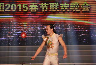《星光大道》年度六強、被譽為“舞臺開心果”的陸海濤登場獻唱自己的新歌《好媳婦》,原汁原味的東北風(fēng)味唱腔幽默風(fēng)趣,引爆現(xiàn)場氣氛,他還親切地與觀眾互動,快速切換模仿模式,分別用楊坤、趙本山、劉歡、騰格爾、殷秀梅的聲腔表演歌曲《無所謂》,惟妙惟肖,博得現(xiàn)場一陣陣掌聲;集團春晚常青樹——興業(yè)社區(qū)文體活動俱樂部的中老年朋友們精心編排了舞蹈《幸福如意》,舞出了6萬業(yè)主“住在興業(yè),一起幸!钡男穆暎淮笮腿似粱庸(jié)目《我是興業(yè)小蘋果》,將臺上、臺下融為一體,整個演播大廳變?yōu)闅g樂舞動的海洋;歌伴舞《愿得一人心》浪漫纏綿,表達了祝福天下有情人終成眷屬的美好心愿;2008年曾作為特邀演員參演興業(yè)春晚的雜技演員周天,再次登臺帶來全新雜技表演《抖空竹》,他技藝超群,令人目不暇接,引得現(xiàn)場觀眾一陣陣驚呼贊嘆。