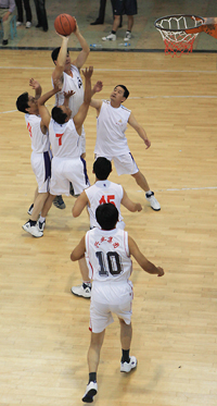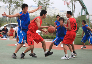 在比賽過程中各支代表隊都發(fā)揮出了極高的水平,為觀眾奉獻了一場場精彩的比賽。尤其在9月20日上午的交叉賽中,興業(yè)汽配代表隊與天泰鋼結(jié)構(gòu)代表隊勢均力敵,比賽中雙方比分交替上升,離結(jié)束還有不到20秒時,汽配代表隊61:58領(lǐng)先3分并持有球權(quán),此時汽配隊員的心理感覺穩(wěn)操勝券,一個不經(jīng)意的走步把球權(quán)送給對手,離結(jié)束不到2秒,鋼構(gòu)中鋒馬沖順勢強攻,一記精準(zhǔn)的3分遠投, 將比分追成61平,使比賽拖進加時。在加時賽中,汽配中鋒崔冰連續(xù)中投得手,興業(yè)汽配代表隊最終以73:65的比分完勝鋼構(gòu),躋身本屆籃球比賽的冠、亞軍決賽。因為天氣原因,9月20日下午的半決賽、決賽和驥翼組籃球表演賽改在日照一中室內(nèi)籃球場舉行。半決賽、決賽異常激烈,特別是在興發(fā)和汽配之間進行的決賽,展示了興業(yè)集團籃球的實力和水平,興發(fā)隊員們一次次嫻熟的配合,一個個精彩的扣籃,不時獲得現(xiàn)場觀眾的陣陣喝彩和掌聲。集團驥翼隊與興發(fā)驥翼隊的籃球表演賽同樣上演了群雄大戰(zhàn),集團驥翼隊在王建國總經(jīng)理帶領(lǐng)下,抗拒了體力不足,堅持打滿全場,最終以44:44的比分和興發(fā)驥翼隊握手言和(因?qū)俦硌葙惒辉偌訒r),也宣告興業(yè)集團第五屆職工運動會籃球比賽鳴金收兵。